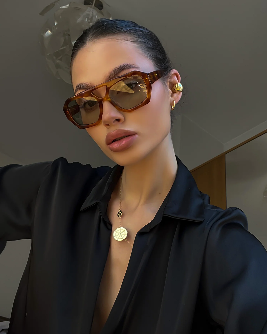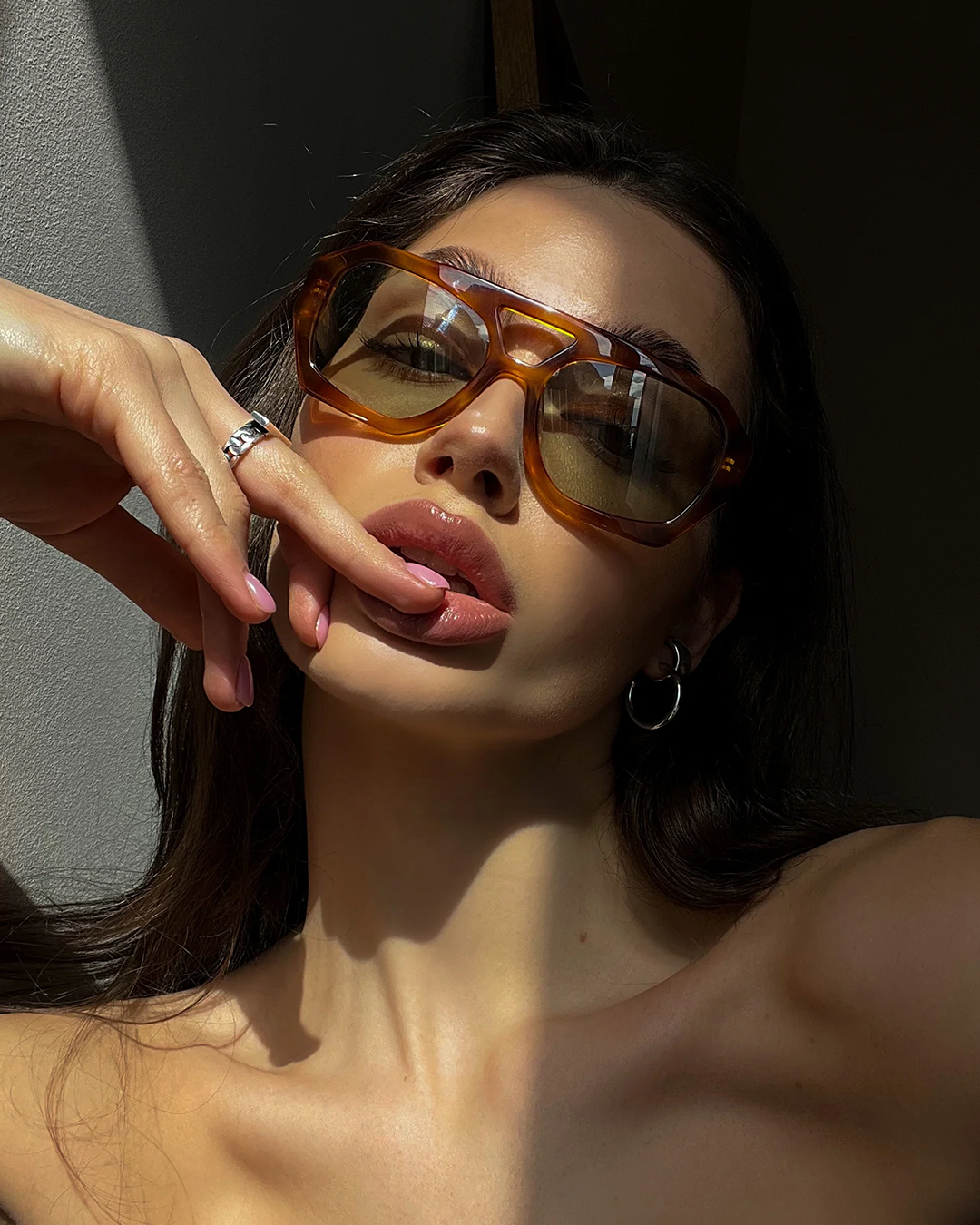 Meet Suki – a bold statement sunglass with a striking geometric shape and unapologetic character. Fusing retro vibes with modern edge, these shades are made for those who aren’t afraid to stand out. The thick, structured frame and distinctive cut-out nose bridge create a contemporary silhouette, while the tinted lenses offer stylish sun protection.