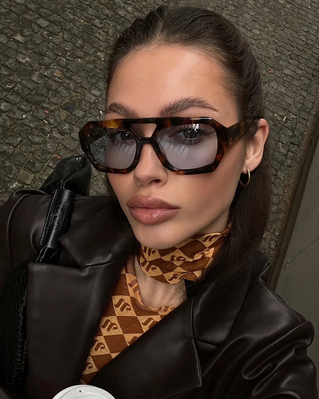 Meet Suki – a bold statement sunglass with a striking geometric shape and unapologetic character. Fusing retro vibes with modern edge, these shades are made for those who aren’t afraid to stand out. The thick, structured frame and distinctive cut-out nose bridge create a contemporary silhouette, while the tinted lenses offer stylish sun protection.
