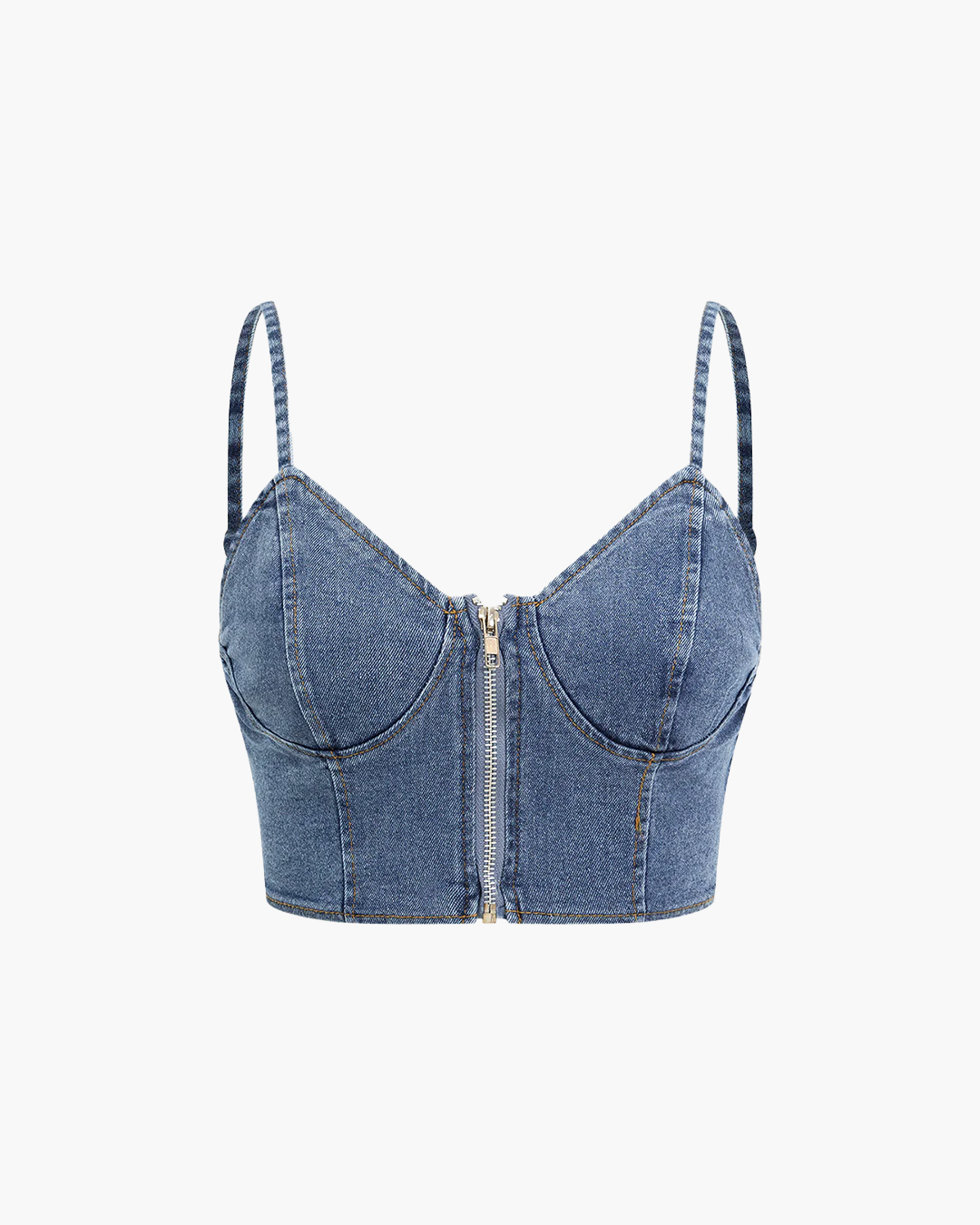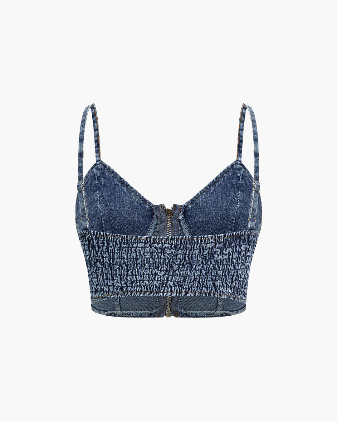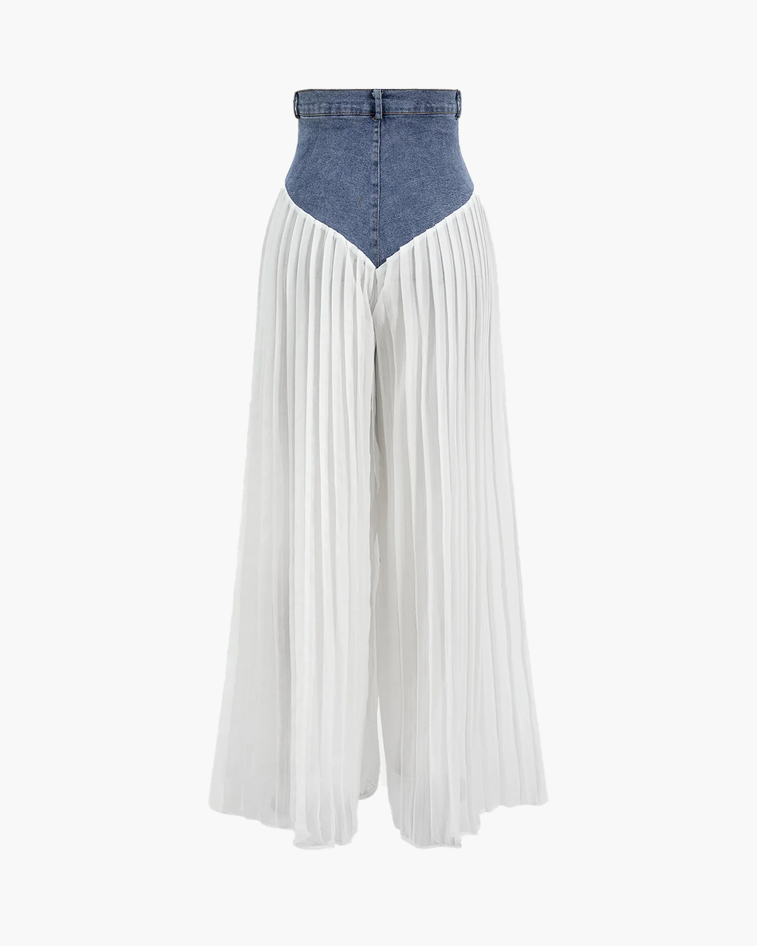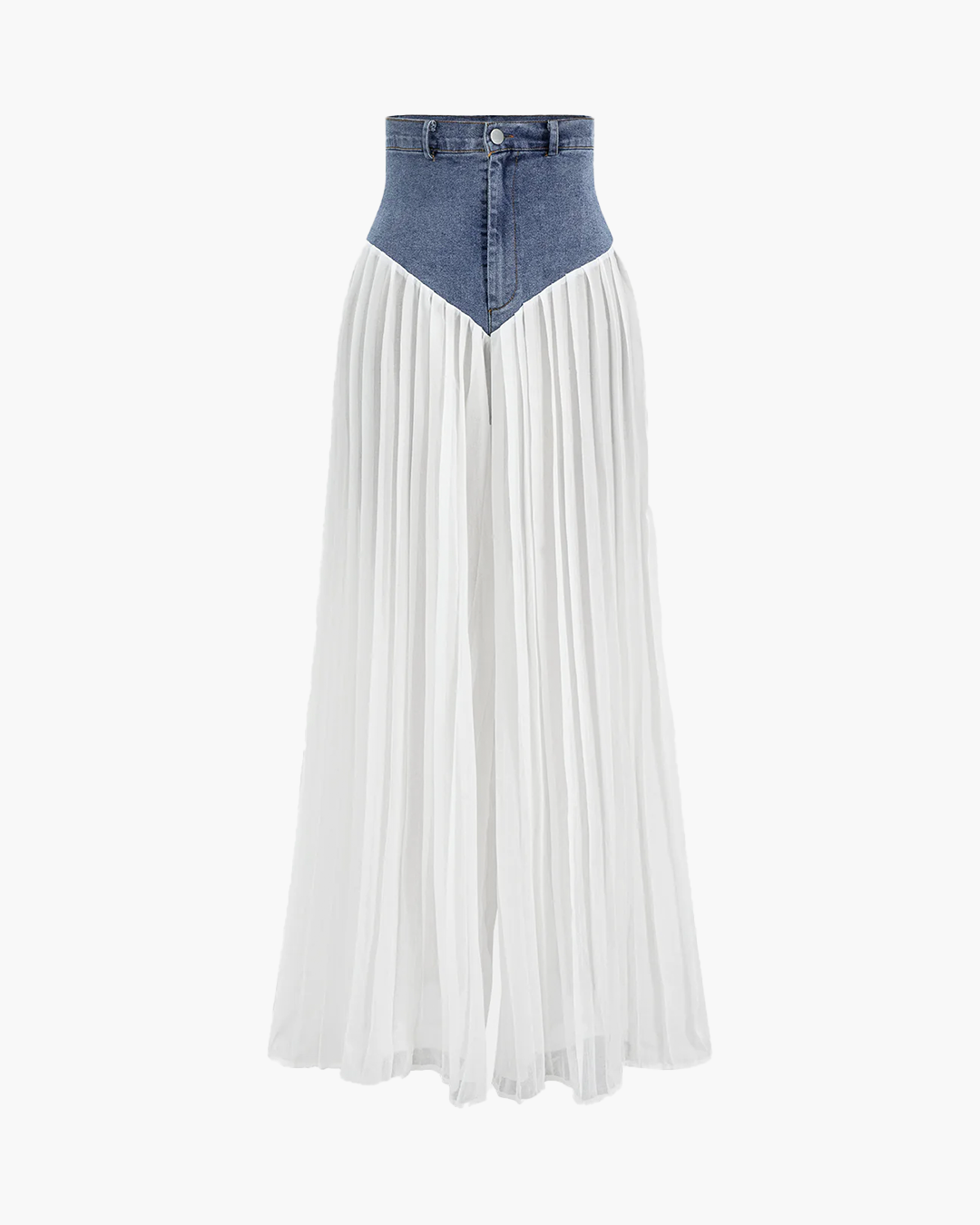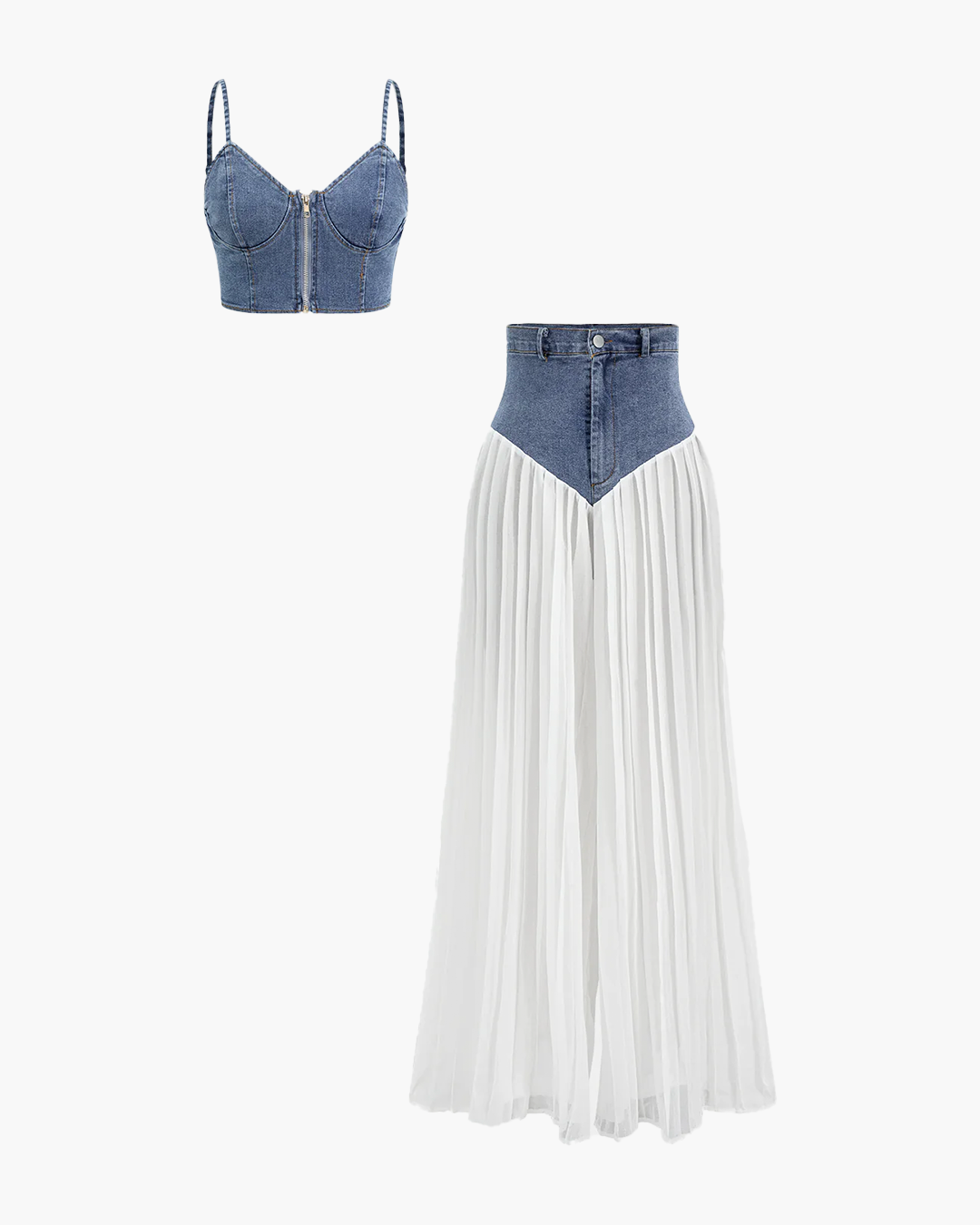 Chloe – Denim Bustier And Pleated Chiffon Pants Set