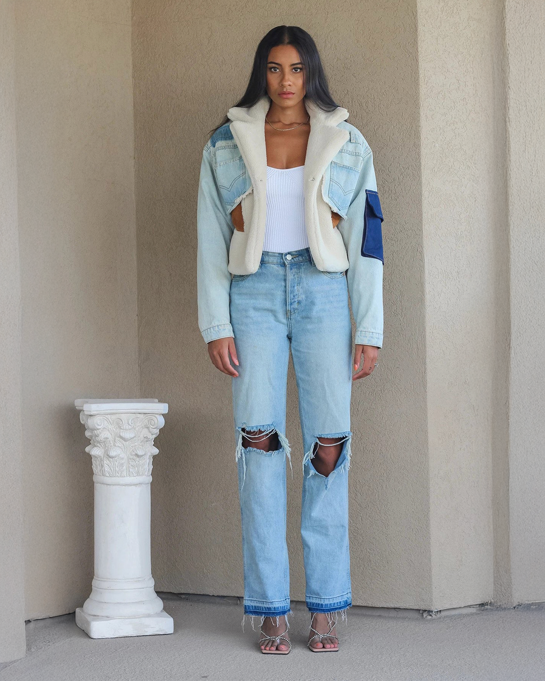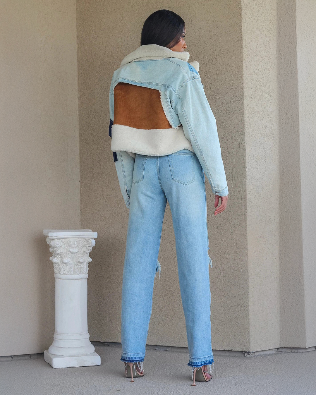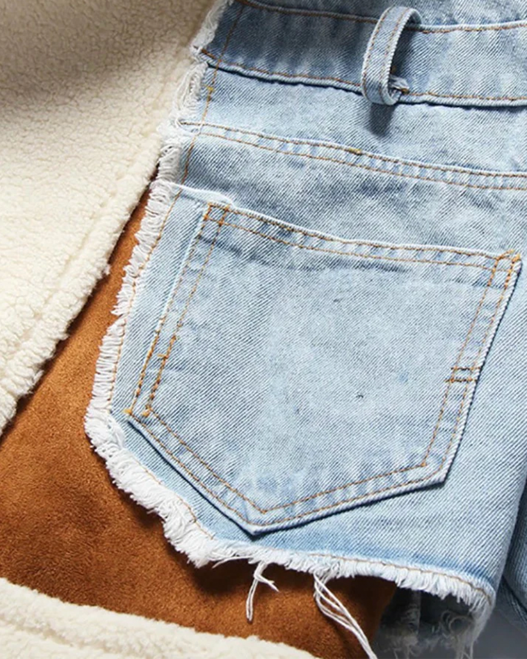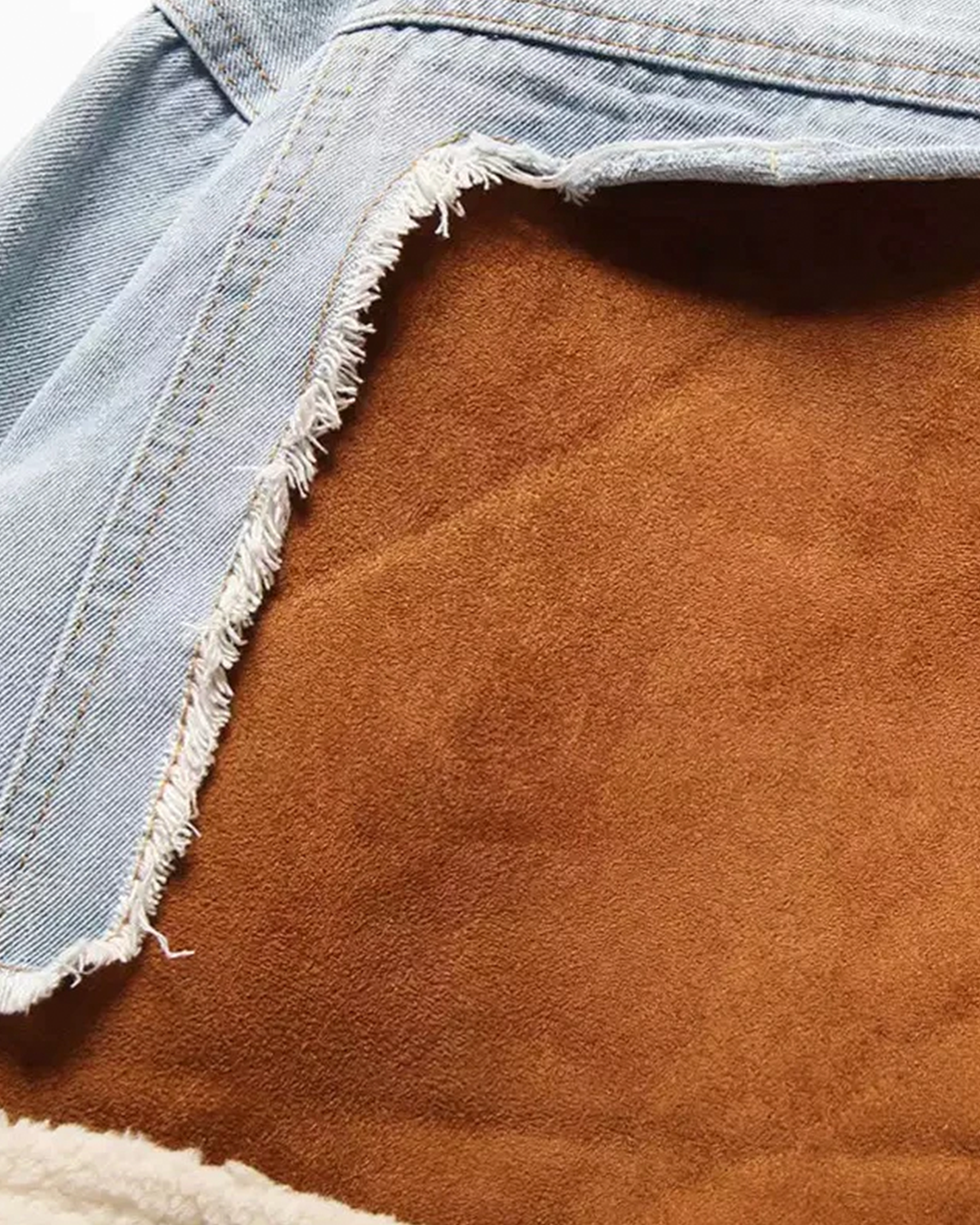 • Fabric: Denim, Vegan Sherpa, and Vegan Suede